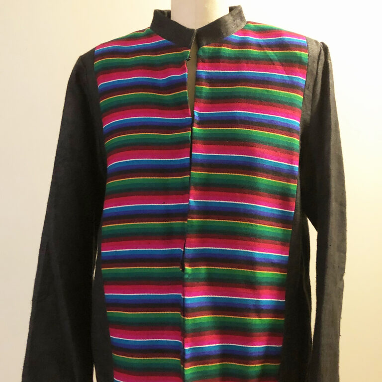 6054 – Black Handwoven Cotton with Rainbow Front panel Jacket (S/M)