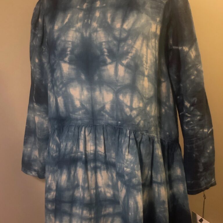 Item Description Natural hand indigo dyed “Japanese shibori block dyeing with indigo” design 100% cotton woven tunic beautiful over leggings or shorts. A statement piece at a comfortable price B:…