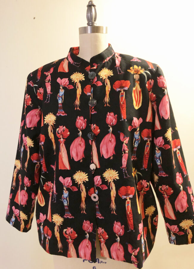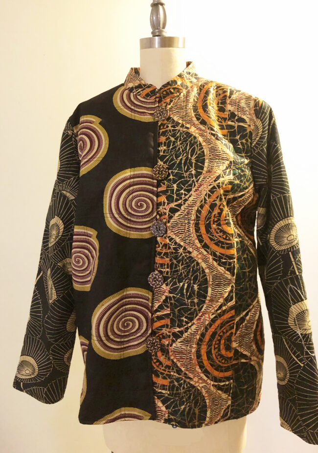 6066 – Travel Jacket in Black Cotton Spandex with Asian Print (M/L)