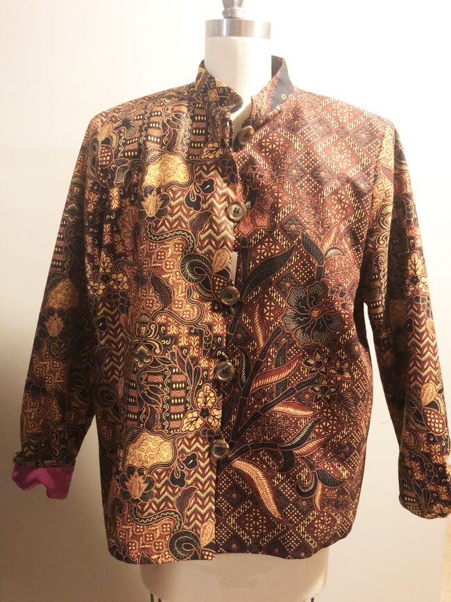 6107 – Brown Batik Cotton Jacket with Fushia Pink (L)