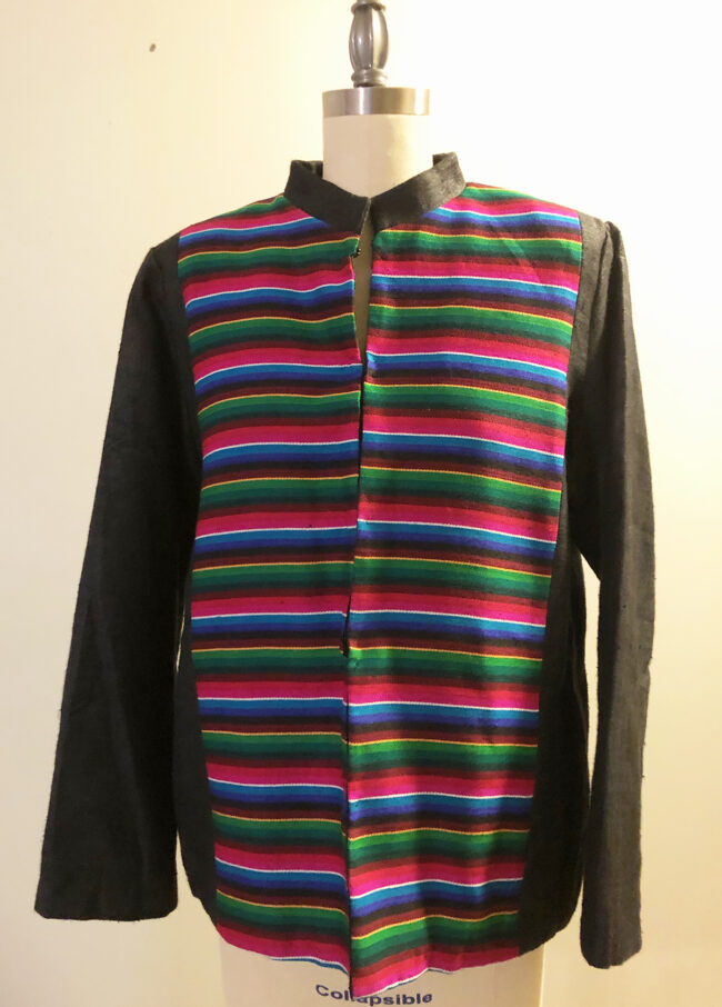 6054 – Black Handwoven Cotton with Rainbow Front panel Jacket (S/M)