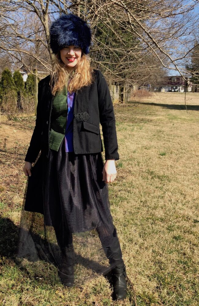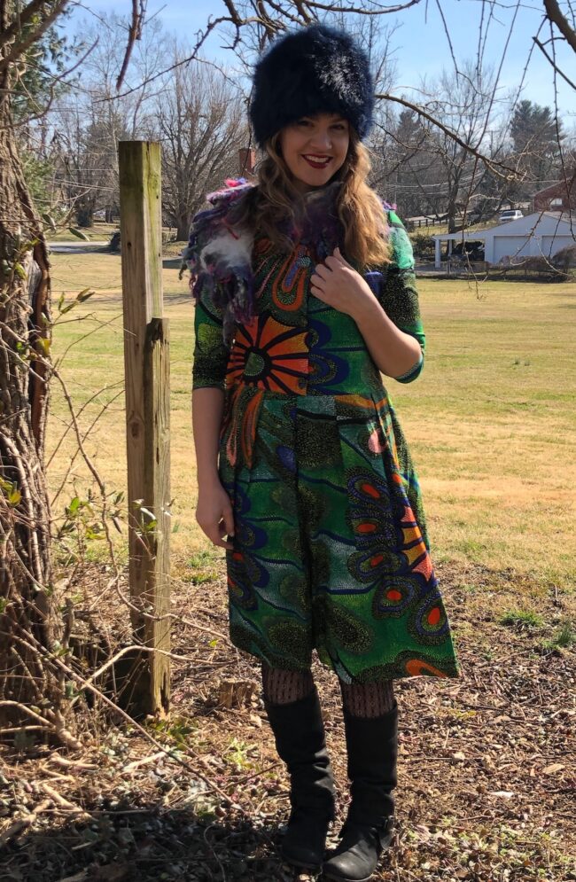 ITEM DESCRIPTION Recycled wool is accented with silk, African Kitenge cloth and ribbons in a timeless style. Bracelet length sleeves MEASUREMENTS: Several sizes available. Contact for information PRICE: $335 Size…