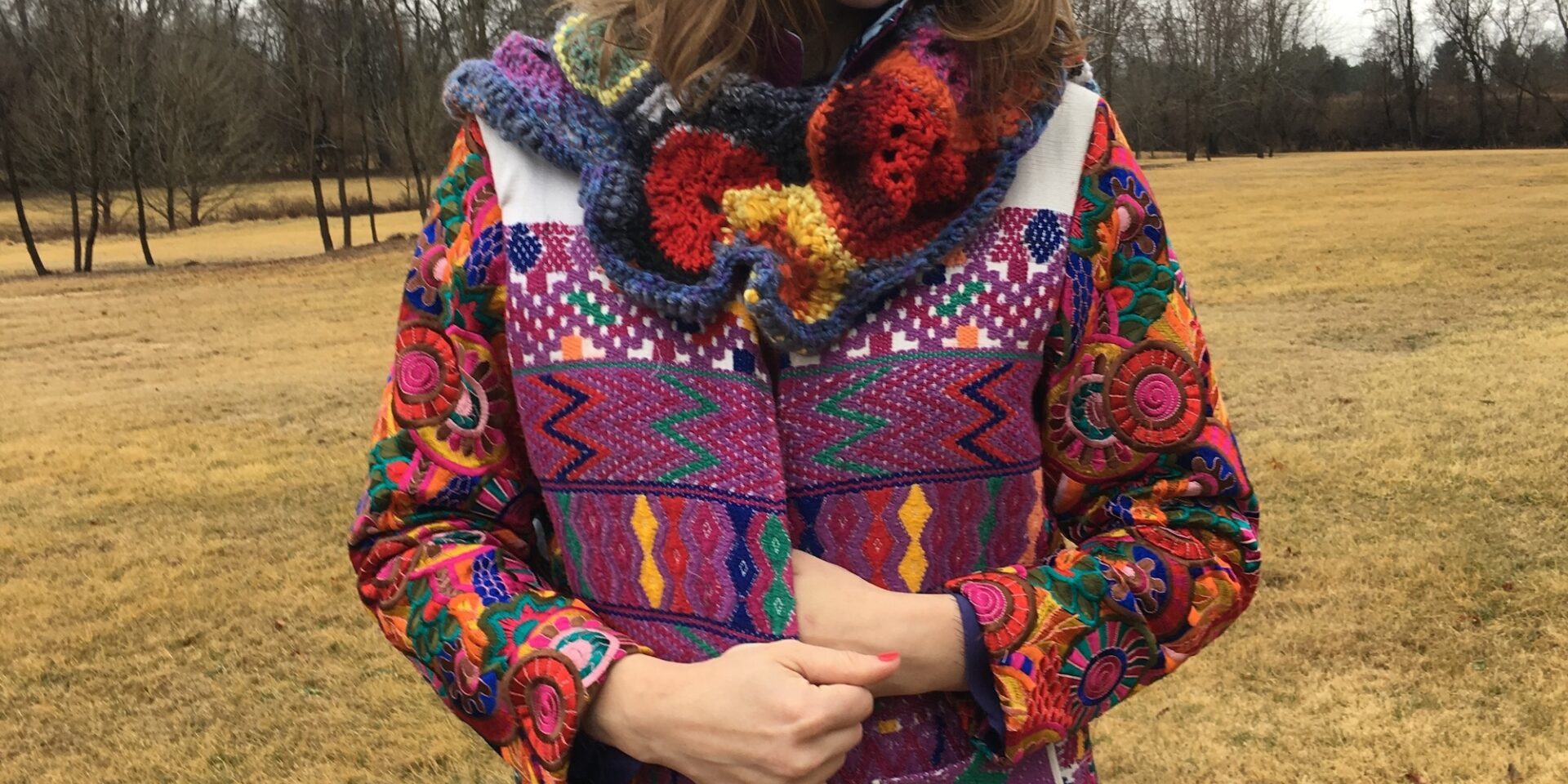 White mud cloth from Mali accented with vintage hand embroidered huipil from Guatemala