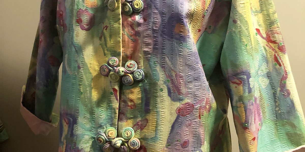 Reversible pastel “Monet” reminiscent cotton print with ballet pink reverse.