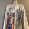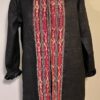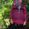 Recycled wool is accented with silk, African Kitenge cloth and ribbons in a timeless style. Bracelet length sleeves