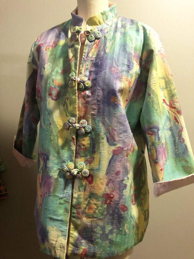 Item Description Reversible comfortable jacket in indigo color one size and red the other Comfortable easy care polyester B: 50 W: 49 H: 50 Sleeve length 28″ with roll-up sleeve…